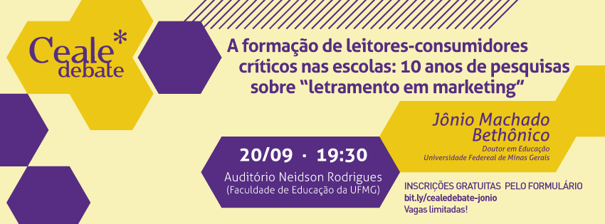 Livros didáticos, docentes da Rede Municipal de Ensino de Belo Horizonte, sugestões de aula disponibilizadas online no Portal do Professor, os Parâmetros Curriculares Nacionais, avaliações, professores em formação. Vários focos de análise, a mesma problemática: letramento em marketing. O Ceale Debate de setembro convida o pesquisador da UFMG Jônio Bethônico para discutir o tema “A formação de leitores-consumidores críticos nas escolas: 10 anos de pesquisas sobre letramento em marketing”. O evento será realizado no dia 20 (terça-feira), a partir das 19h30, no Auditório Neidson Rodrigues da Faculdade de Educação da UFMG, campus Pampulha (Avenida Antônio Carlos, 6.627).