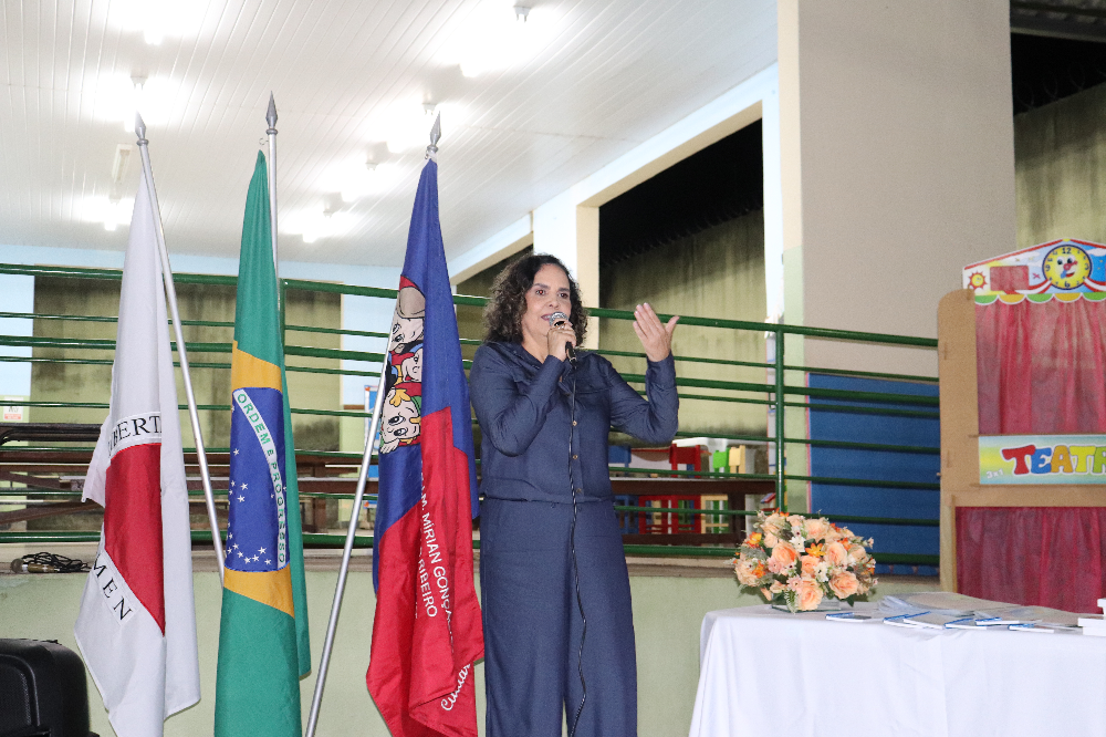 Secretária Municipal de Educação Claudilene Dornas em seu discurso de abertura