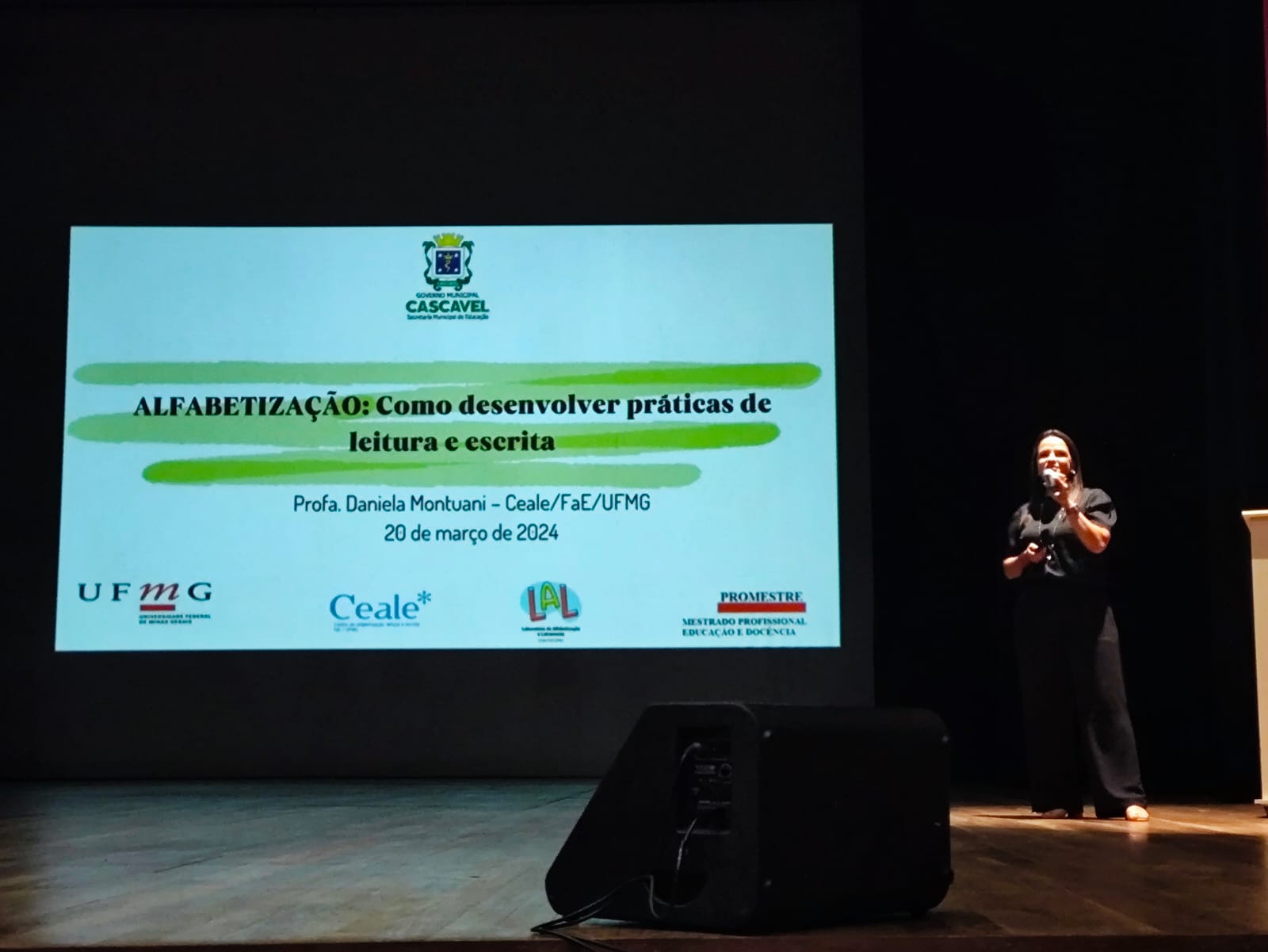 A professora Daniela Montuani, vice-diretora do Ceale, esteve presente no Seminário da Alfabetização - Inovações e práticas em Educação em Cascavel-PR, que aconteceu nos últimos dias 19 e 20, no Teatro Municipal Sefrin Filho.