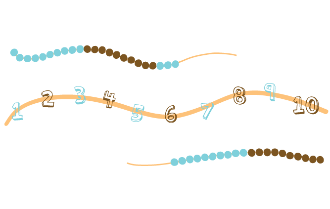 Louisianne, que leciona para o 1º ano, levou um fio de contas para a sala de aula e perguntou se alguém sabia o que era. Alguns arriscaram ser uma pulseira, outros, um colar, mas apenas um tinha a resposta na ponta da língua, porque a mãe, professora, já havia lhe mostrado. Louisianne completou a explicação, dizendo se tratar de um material didático feito de barbante e miçangas grandes (chamadas de contas), que pode ser usado para fazer operações matemáticas. Depois da primeira apresentação, os alunos tiveram a tarefa de confeccionar seu próprio fio de contas. Cada um recebeu um saquinho com 40 unidades de contas (20 azuis e 20 marrons), que primeiro foram separadas pela cor em dois copos distintos. Após essa classificação, eles tinham de preencher o cordão em quatro partes iguais, intercalando uma dezena de cada cor. “Eles mesmos colocavam, contavam e separavam as contas no fio. Com isso, a gente conseguiu trabalhar classificação, seriação, contagem e a relação número/quantidade, já que, se eles colocassem errado, ia faltar (ou sobrar) para preencher depois.”