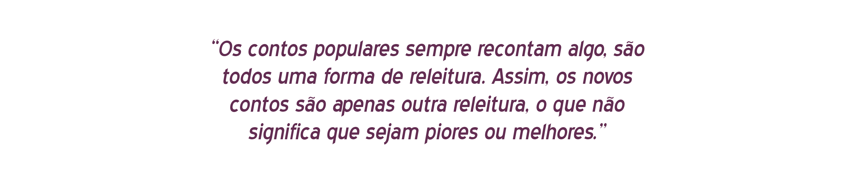 Isso é muito interessante, porque as pessoas dizem que devemos preservar o clássico conto de fadas e o conto popular, como eram contados nos séculos 18 e 19, e que não se pode mudar esses gêneros. E o que os livros atuais estão fazendo é atualizar os contos antigos para alguma forma híbrida. Então, minha resposta é: “Por que não?” Os contos populares sempre recontam algo, são todos uma forma de releitura. Assim, os novos são apenas outra releitura, o que não significa que sejam piores ou melhores, e são ótimos livros para mostrar à sociedade, por exemplo, como a mulher é vista atualmente. Se você está perguntando se isso é bom ou não para as crianças, eu não sei dizer. Pode ser bom para um grupo de meninas e, se essas meninas compraram esses livros e estão gostando de ler, por que se preocupar? Talvez não seja de nosso agrado que as meninas estejam sendo educadas com essa visão, mas temos que equilibrar essa crítica com o fato de que elas estão aprendendo sobre a estrutura padrão de contos populares. Se perguntarmos a essas garotas: “por que você tem pôneis cor-de-rosa no seu quarto?”, elas não responderão: “bem, tenho um de verdade lá fora”, o que mostra que elas sabem a diferença e, assim, acho que esses livros são bons para uma necessidade atual e nada disso é desrespeitoso, tenho certeza.