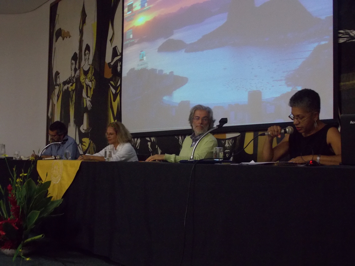 “Literatura e diversidade: questões afro-brasileiras e indígenas”. Foi com esse tema que encerramos a décima edição do Jogo do Livro. Aracy Alves Martins, professora da FaE e mediadora da mesa, iniciou o debate questionando o motivo de estarmos tratando esse assunto. Ela relembrou as leis 10.369 e 11.645. A segunda lei, aprovada em 2008, “estabelece as diretrizes e bases da educação nacional, para incluir no currículo oficial da rede de ensino a obrigatoriedade da temática História e Cultura Afro-Brasileira e Indígena”. No entanto, como se observa facilmente nas escolas, a lei não é de fato cumprida. Segundo Aracy, essa discussão é necessária “para que possamos entender a contribuição desses povos na nossa cultura, língua e história”.