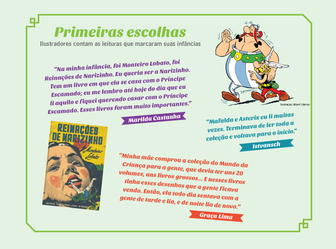 “Mãe, vem cá! A Gracinha vai ler uma história para você”, convidou o irmão da ilustradora Graça Lima, na época, uma menininha de apenas 4 anos que ainda não havia sido alfabetizada. Para a surpresa da mãe da ilustradora, a menina não contou a história que estava escrita ali, mas outra, criada por ela mesma a partir das ilustrações. “Na verdade, eu não li a história que estava escrita em palavras. Eu li e criei uma história a partir do que tinha na moldura. Mas li com tanta convicção que minha mãe achou que a história estava escrita, porque eu fazia pausa na leitura”, relata a ilustradora e professora da Universidade Federal do Rio de Janeiro (UFRJ). “A imagem sempre foi uma coisa muito forte pra mim”, conclui Graça.