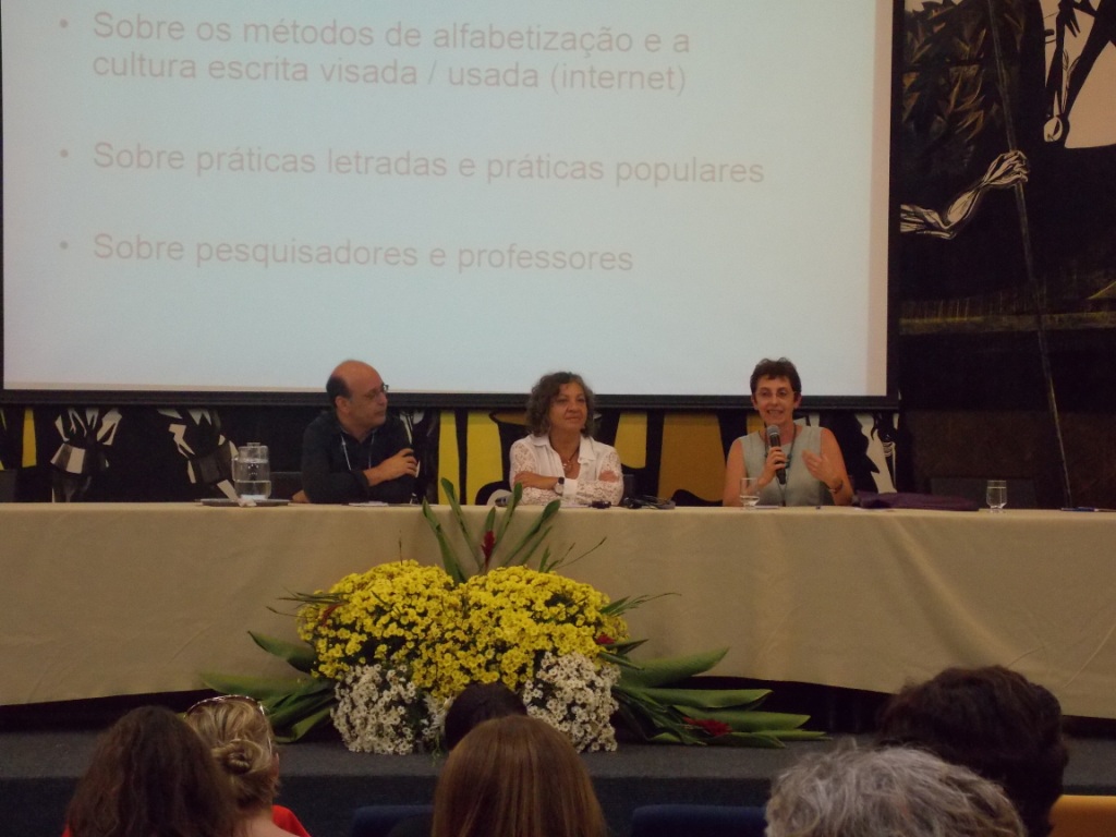 A pesquisadora Judy Kalman, do Centro de Investigación y de Estúdios Avanzados (México) iniciou o evento falando um pouco sobre a tecnologia como auxilio no processo de ensino da leitura e da escrita, e destacou como a alfabetização gera civilidade e democracia. Maria Zélia Versiani, pesquisadora do Ceale, falou sobre perspectiva metodológica de pesquisa sobre práticas de letramento escolares e não escolares em contexto rural. A pesquisa conta com Diários de Participantes, escritos por alunos de Escola Família Agrícola – EFA – de Minas Gerais. A última palestrante, Virgínia Zavala, professora e pesquisadora da Univerdad Católica de Lima (Peru) falou sobre a literatura e tradução no processo de ensino da quéchua, língua indígena da América do Sul, uma das línguas oficiais do Peru