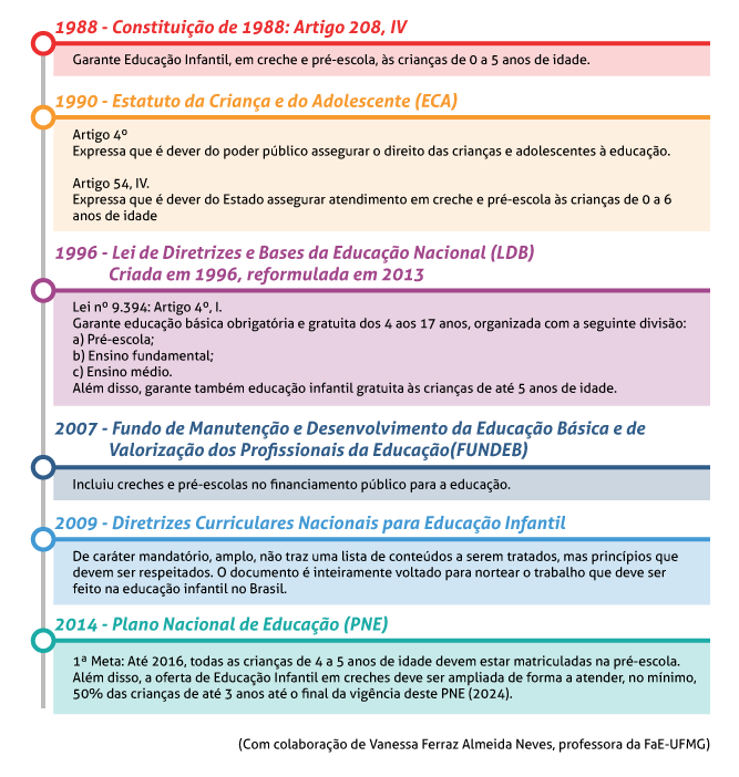 A consultora de redes de ensino Vitória Faria, que atuou no Ministério da Educação (MEC) de 2001 a 2006, conta que, a partir da reformulação das Diretrizes Curriculares Nacionais da Educação Infantil, publicadas em 2009, a Educação Infantil passa a ser pensada como “um espaço de formação humana em todas as dimensões”. “O cuidar e o educar, que são questões básicas dessa etapa, passam a ser entendidos como um trabalho com todas as dimensões humanas: cognitiva, física, afetiva, emocional e social”. Após esse marco na política pública nacional, fica bem claro que essa etapa educacional não é uma preparação para algo que vem depois. Por isso, Denise Lopes não concorda com a nomenclatura “pré-escola”: “Eu discordo desse nome, pois a Educação Infantil não deve ser encarada como um período preparatório para o Ensino Fundamental; ela tem uma função em si mesma”.