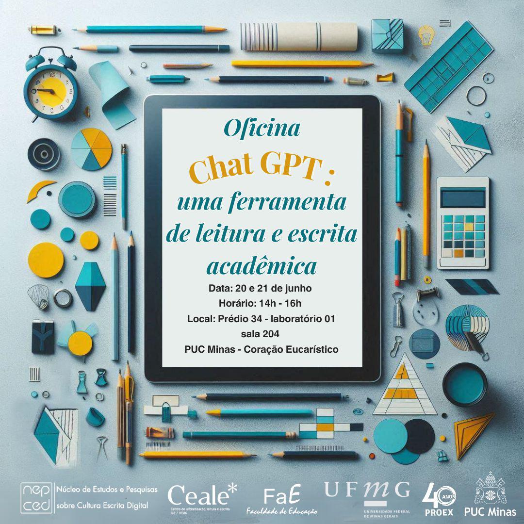 O Núcleo de Estudos e Pesquisa sobre Cultura Escrita Digital (NEPCED/Ceale) da UFMG e o Laboratório de Extensão, Práticas, Pesquisas, Publicações Acadêmicas e Internacionalização (Lepppai), da Pró-reitoria de Extensão (Proex) da PUC Minas vão promover uma oficina sobre o uso do Chat GPT como ferramenta de leitura e escrita acadêmica.