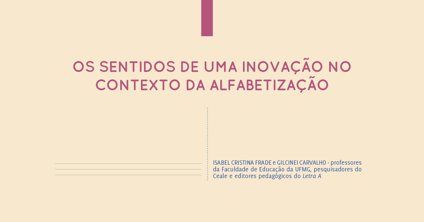 A inovação na alfabetização pode ser identificada especificamente em aspectos que envolvem o processo de ensino e de aprendizagem da língua escrita e, mais amplamente, em questões educacionais relacionadas ao processo de escolarização. Também pode ser avaliada em relação a ideologias ou práticas que dimensionam certas expectativas produzidas pela sociedade e que, portanto, não se limitam ao contexto escolar. No entanto, as inovações no campo da alfabetização são historicamente relacionadas à sua transferência da esfera doméstica para a esfera das instituições escolares. A alfabetização passa, então, a ser uma das primordiais funções da escolarização. Assim, é a escola que faz surgir os métodos apropriados ao seu contexto de ensino e de aprendizagem.