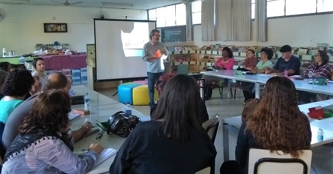 Após o lanche, o professor Carlos discutiu os problemas da proposta do “PNLD literário 2018”, que substituirá o PNBE. Na visão dos formadores do curso Leituras em Conexão, a atual política de distribuição de livros literários do MEC causará uma “didatização” da literatura.