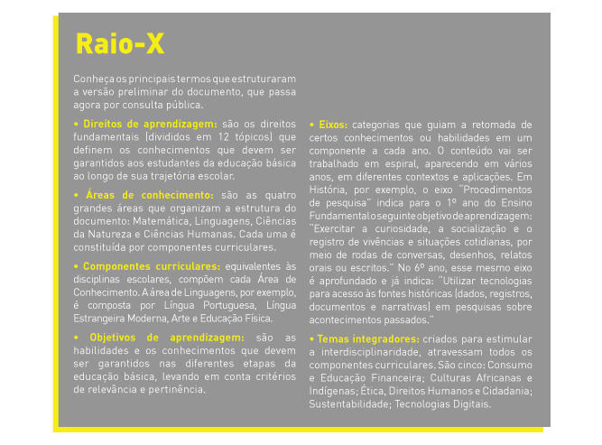 Com a Base, pretende-se deixar claros os conhecimentos fundamentais que precisam ser trabalhados em cada etapa nas grandes áreas do conhecimento e como desenvolvê-los em sala de aula.