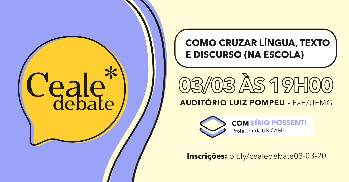 Estão abertas as inscrições para o Ceale Debate de março, que abordará o tema "Como cruzar língua, texto e discurso (na escola)”. O convidado é o professor da UNICAMP Sírio Possenti.